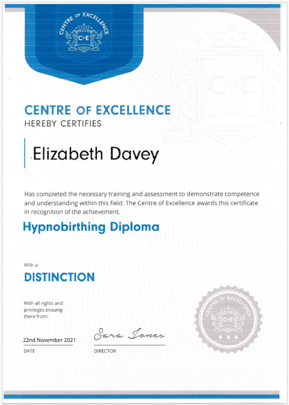 Hypnobirthing Diploma.